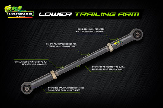 Trailing arms are some of the most exposed suspension components on a lifted 4x4 and are prone to bending and breaking. Ironman 4x4 has resolved this common problem by producing heavy duty ADR approved, adjustable lower...Regular price $299.00Regular price $299.00 -