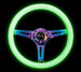 NRG Classic Wood Grain Steering Wheel (350mm) Glow-N-The-Dark Green Grip w/Neochrome 3-Spoke Center
