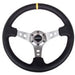 NRG Reinforced Steering Wheel (350mm / 3in. Deep) Blk Leather w/Gunmetal Cutout Spoke & Yellow CM