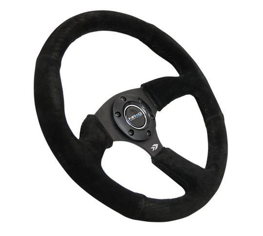 NRG Reinforced Steering Wheel (350mm / 2.5in. Deep) Blk Suede Comfort Grip w/5mm Matte Blk Spokes