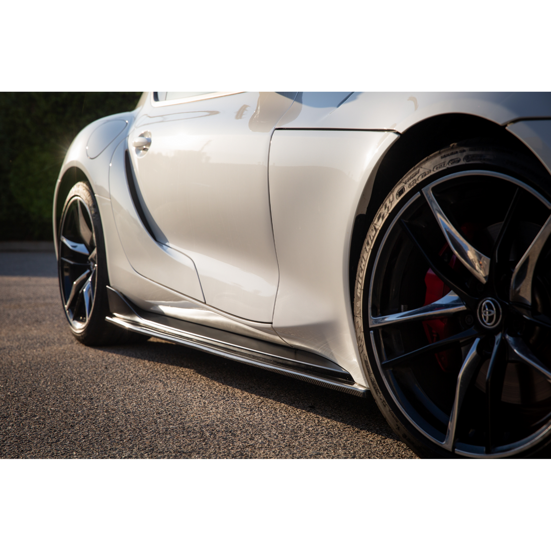 Specifically tailored for the MK5 A90 Supra, these side skirt extensions seamlessly blend with the car's aesthetics, adding a sporty and aggressive touch.