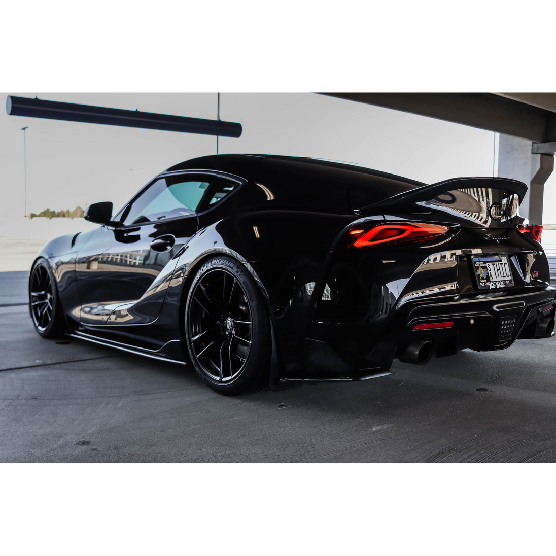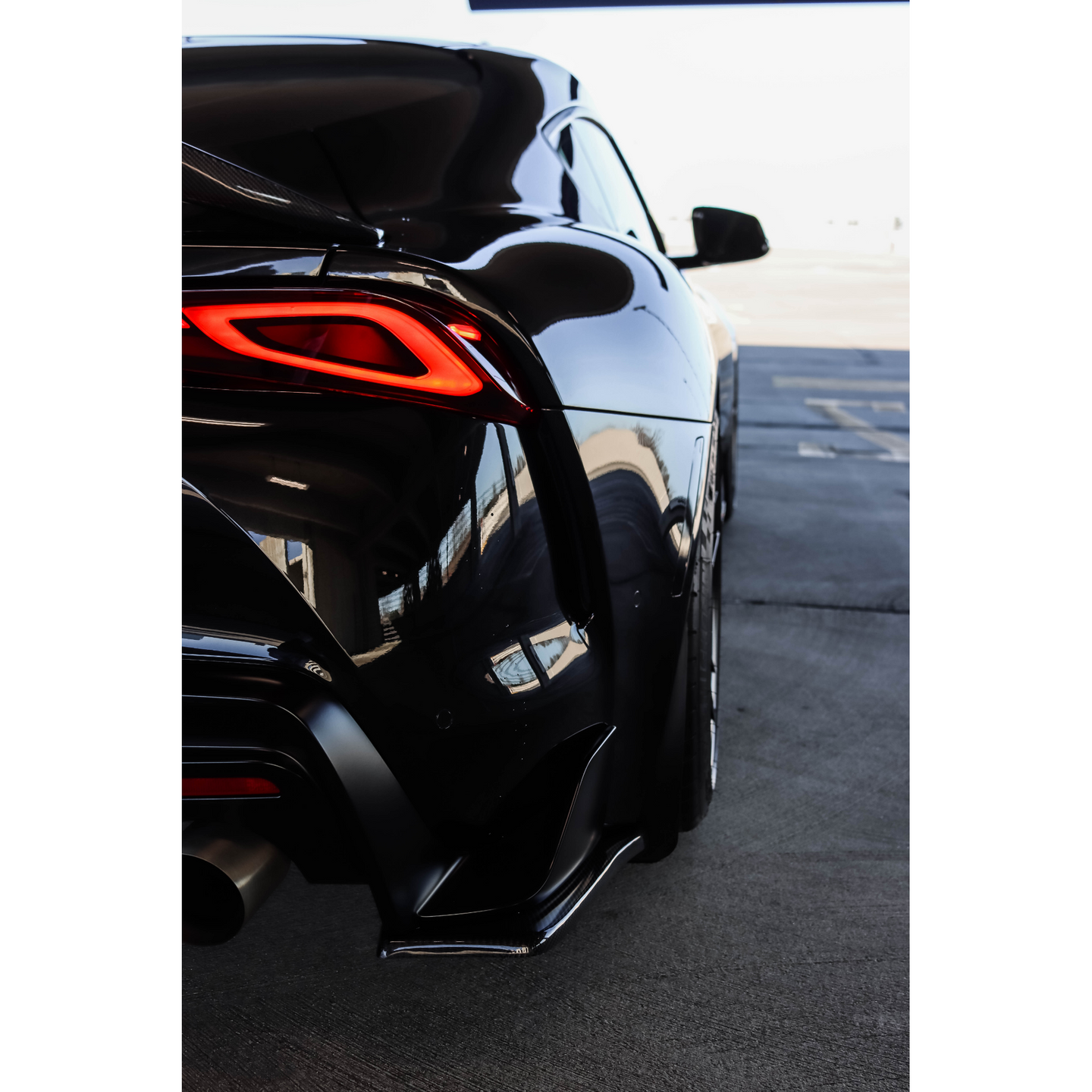 Crafted from the finest carbon fiber materials available, these rear bumper side splitters embody the perfect synergy of lightweight construction and uncompromising strength. Each splitter is meticulously handcrafted, utilizing advanced manufacturing techniques to ensure precise fitment and exceptional durability, while the signature carbon fiber weave pattern adds a touch of bespoke elegance to your vehicle's rear profile.