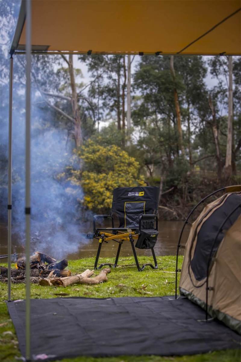 Sporting Old Man Emu colors, BP-51 branding, and a sleek anodized-aluminum cross support frame for class-leading style, the new ARB Director Chair is a must at the campsite, sporting events, or your friend's BBQ. With full high back support, auto-folding table with cup holder, padded armrests, a safety lock-out button, unique any-terrain legs,a anti-leak cooler bag, and an abundance of pockets, the ARB Director Chair folds neatly down into an easy-pack carry bag. ARB's BP-51 Compact Director Chair has a unique folding mechanism that folds all the arms and legs together into a compact square shape.